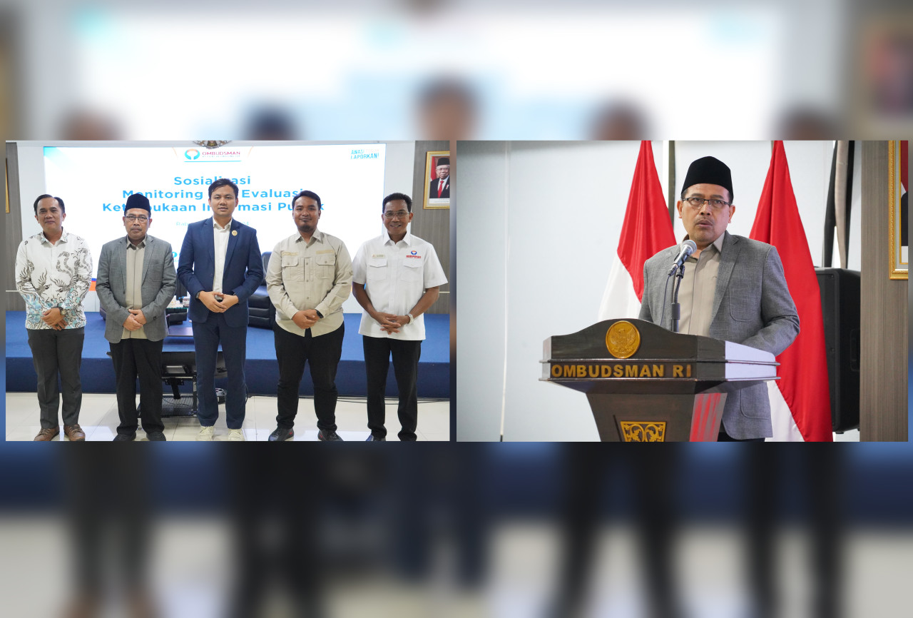 Ketua Ombudsman RI, Mokhammad Najih menjadi Keynote Speaker dan membuka Sosialisasi Monitoring dan Evaluasi Keterbukaan Informasi Publik Tahun 2024 dengan narasumber Wakil Ketua Komisi Informasi Pusat, Arya Sandhiyudha, pada Rabu (28/8/2024) di Gedung Ombudsman RI, Jakarta Selatan. Turut hadir Sekretaris Jenderal Ombudsman RI, Suganda Pandapotan Pasaribu.