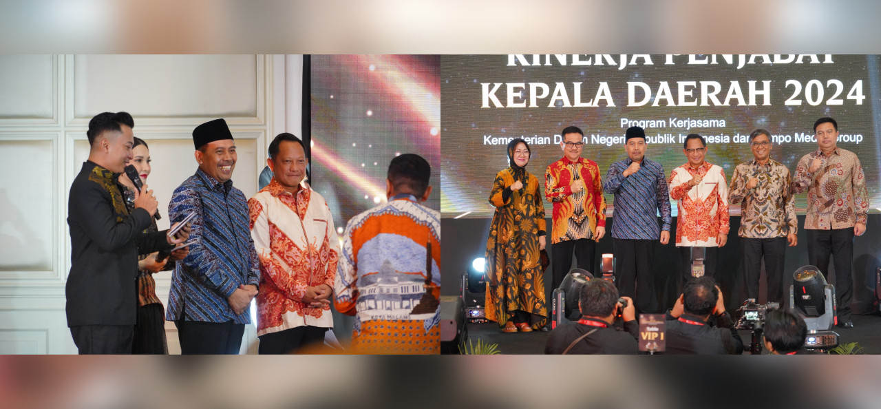 Ketua Ombudsman RI Mokhammad Najih Bersama Menteri Dalam Negeri Tito Karnavian saat menghadiri malam Apresiasi Kinerja Penjabat Kepala Daerah 2024 di The Tribrata Convention Center, Jakarta Selatan, pada Jumat (30/08/2024).