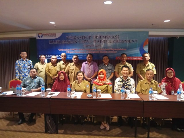 Pangkalpinang - - Ombudsman Republik Indonesia perwakilan Bangka Belitung mengadakan workshop diseminasi hasil kajian cepat tentang optimalisasi PATEN (Pelayanan Administrasi Terpadu Kecamatan) dalam pelayanan Administrasi Kependudukan wilayah kepulauan di Kabupaten Bangka Selatan, Selasa (26 /11) di Swiss Bell hotel Pangkalpinang.