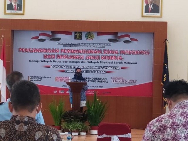 Hal tersebut disampaikan Septiandita pada acara Pencanangan Pembangunan Zona Integritas Menuju Wilayah Bebas dari Korupsi (WBK) dan Wilayah Birokrasi Bersih dan Melayani (WBBM) dan Deklarasi Janji Kinerja yang dilaksanakan oleh Kanwil Kemenkumham DIY di Aula Lapas Kelas IIA Narkotika Yogyakarta pada Kamis, (11/2/2021).