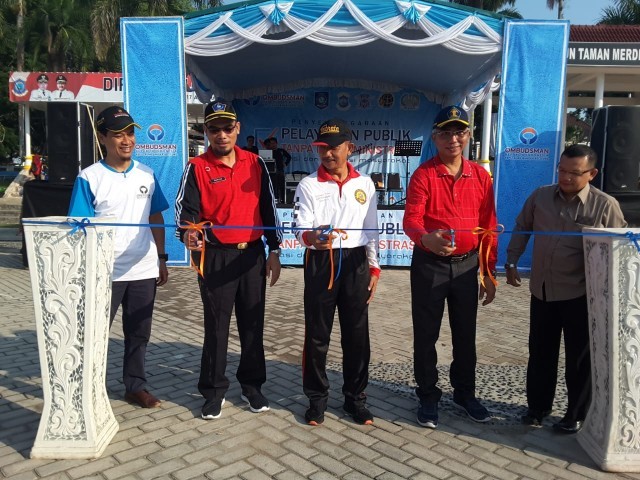 Selepas pembukaan, Asisten Administrasi Umum didampingi Plt Kepala Ombudsman Bangka Belitung, sejumlah tamu undangan dan peserta Penyelenggaraan Pelayanan Publik Maladministrasi, Â mengikuti Senam Bedincak, sekaligus mengunjungi satu persatu Stand Pelayanan Publik yang berada di Alun-alun Taman Merdeka.