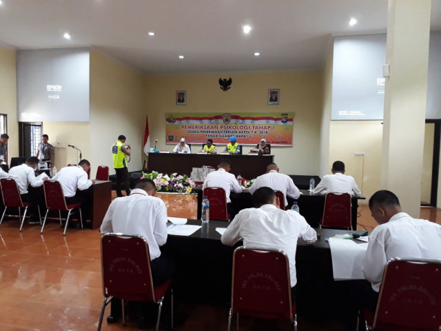 Mamuju - Setelah dinyatakan lolos pada pemeriksaan administrasi awal (Rikmin awal) sejumlah calon siswa (casis) taruna AKPOL mengikuti pemeriksaan psikologi tahap 1 yang dilaksanakan di aula Polda Sulbar, Senin (16/04/18).