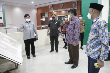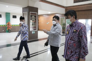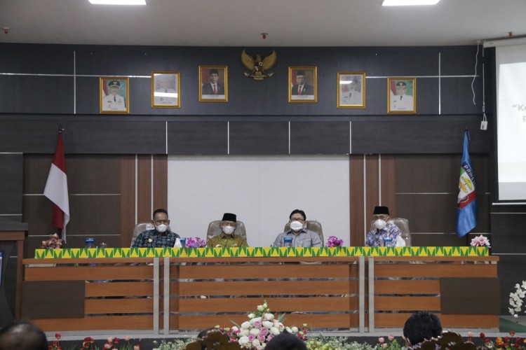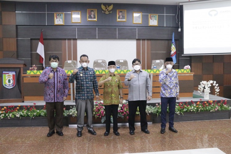 Anggota Ombudsman RI Dadan S Suharmawijaya didampingi Kepala Perwakilan Ombudsman RI Lampung Nur Rakhman Yusuf melakukan kunjungan dan audiensi dengan Bupati Kabupaten Pringsewu Sujadi Saddat dan jajarannya