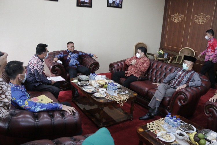 Anggota Ombudsman RI Dadan S Suharmawijaya didampingi Kepala Perwakilan Ombudsman RI Lampung Nur Rakhman Yusuf melakukan kunjungan dan audiensi dengan Bupati Lampung Selatan Nanang Ermanto dan jajarannya