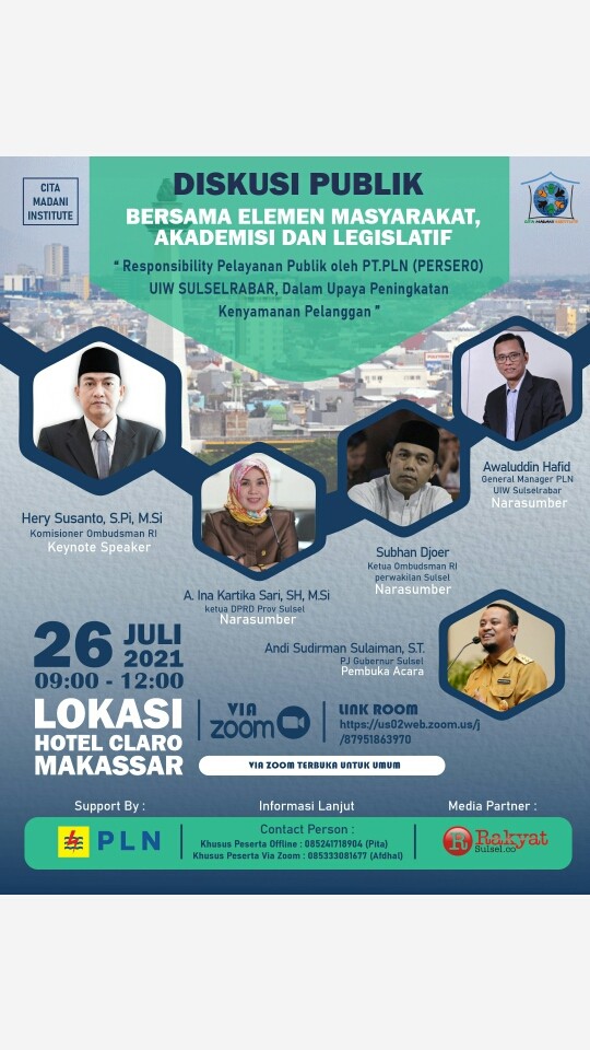 Diskusi Publik Anggota Ombudsman RI Hery Susanto Senin 26 Juli 2021 di Makassar