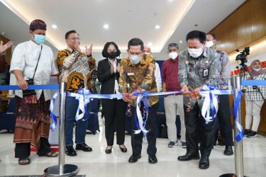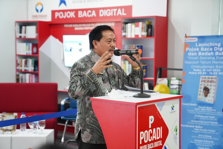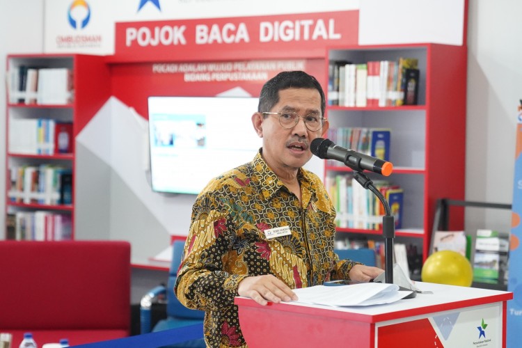 Wakil Ketua Ombudsman RI dan Kepala Perpustakaan Nasional RImelakukan gunting pita dalam peluncuran Pojok Baca Digital Ombudsman RI