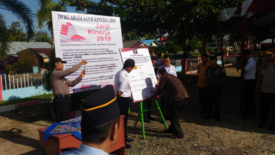 Menjadi Saksi dalam penandatangan janji kinerja 2019 dan fakta integritas Kementerian Hukum dan Ham