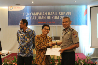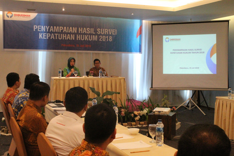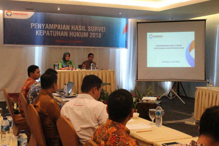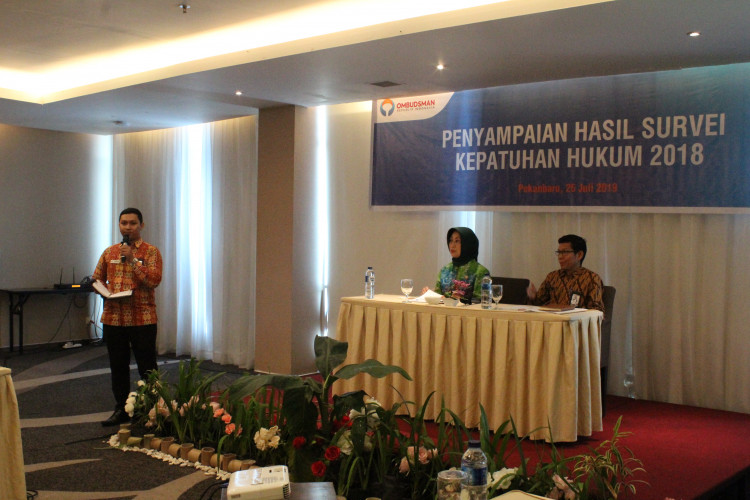 Penyampaian Hasil Survei Kepatuhan Hukum Tahun 2018 Provinsi Riau oleh Anggota Ombudsman RI