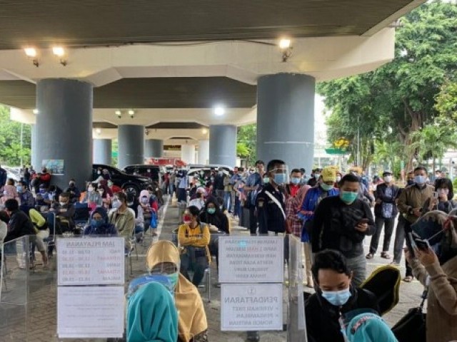 Antrean penumpang pesawat yang hendak rapid test antigen di Terminal 2 Bandara Soekarno Hatta (Bandara Soetta) terpantau mengular pada Selasa (22/12). Hal itu disampaikan oleh Komisioner Ombudsman Alvin Lie. Selain di Bandara Soetta, antrean penumpang juga terdeteksi di Bandara Juanda Surabaya dan Bandara Sepinggan Balikpapan bahkan di Stasiun Gambir hari ini.