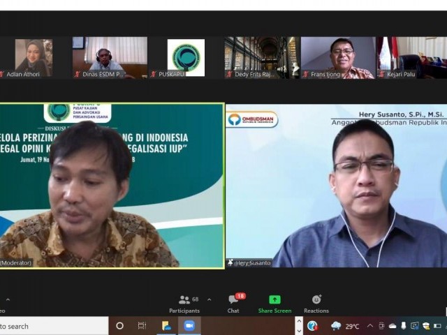 JAKARTA - Dalam rangka pembahasan tata kelola perizinan usaha tambang, Anggota Ombudsman RI, Hery Susanto hadir menjadi narasumber pada diskusi publik "Tata Kelola Perizinan Usaha Tambang di Indonesia, Peran Legal Opini Kejaksaan dalam Legalilasi Izin Usaha Pertambangan (IUP)" yang dilaksanakan secara virtual oleh Pusat Kajian dan Advokasi Persaingan Usaha (Puskapu) pada Jumat (19/11/2021).