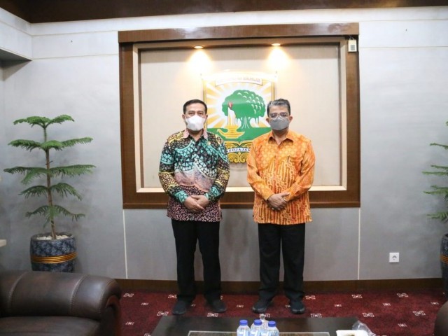 PADANG - Ketua Ombudsman RI Mokhammad Najih bertemu dengan Rektor Universitas Andalas (Unand) Padang, Prof Yuliandri di Gedung Rektorat, Kamis (9/12/2021). Dalam kesempatan ini, Ketua Ombudsman menyampaikan gagasan pelibatan perguruan tinggi dalam pendampingan pemerintah daerah yang tingkat kepatuhan terhadap standar layanan publik masih rendah.