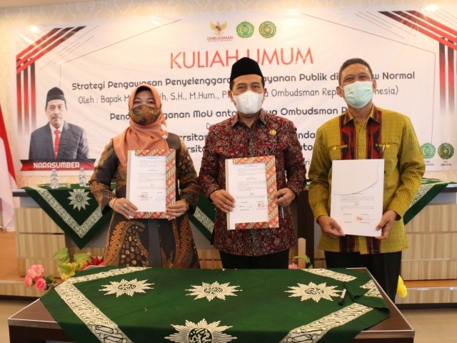 Selain penandatanganan nota kesepahaman, Ketua Ombudsman RI juga menjadi narasumber dalam kuliah umum dengan judul Strategi Pengawasan Penyelenggaraan Pelayanan Publik di Era New Normal.