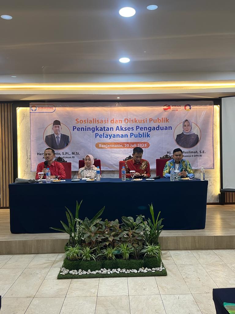 Hal tersebut menjadi perhatian serius dari anggota Komisi II DPR RI Hj Aida Muslimah SE yang secara khusus menggelar sosialisasi dan diskusi publik tentang peningkatan akses pengaduan pelayanan publik yang menghadirkan Ombudsman RI dan perwakilan Ombudsman Kalimantan Selatan di Hotel Jelita, Kamis (20/07).