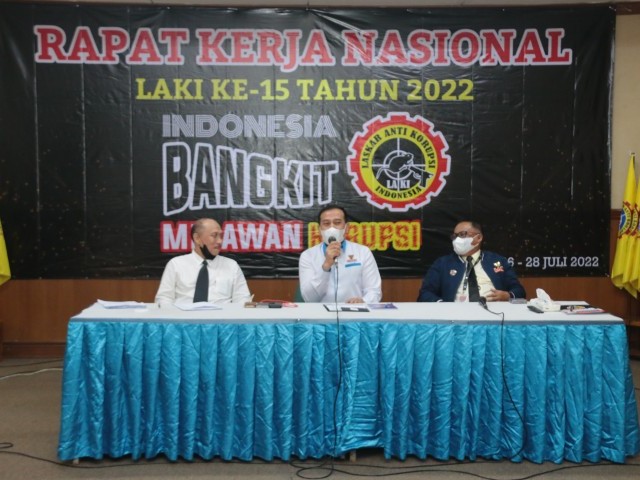Jakarta - Ketua Ombudsman RI, Mokhammad Najih hadir menjadi narasumber pada Rapat Kerja Nasional (Rakernas) Laskar Anti-Korupsi Indonesia (LAKI) ke-15 Tahun 2022 dengan Tema "Indonesia Bangkit Melawan Korupsi" di Padepokan Pencak Silat, Jakarta Timur, Rabu (27/7/2022).