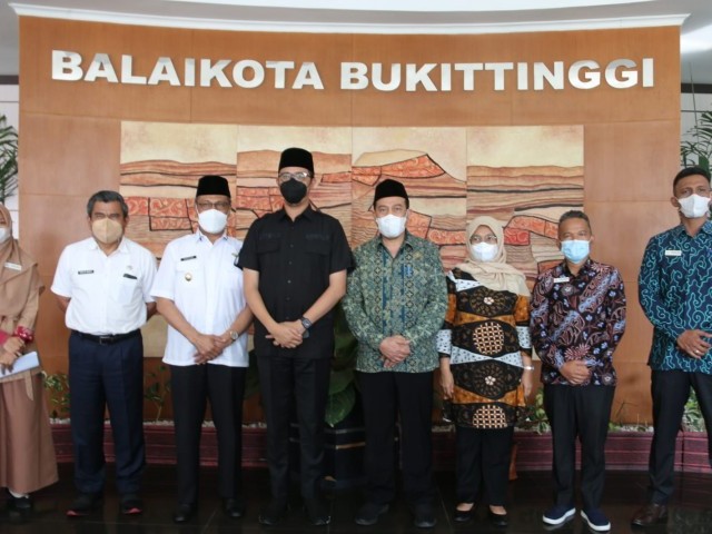 BUKITTINGGI - Ketua Ombudsman RI Mokhammad Najih melakukan pertemuan dengan Walikota Bukittinggi Erman Safar dan Wakil Walikota Bukittinggi Marfendi beserta jajaran di Balaikota Bukittinggi, Rabu (8/12/2021). Pertemuan tersebut membahas sejumlah isu pelayanan publik di Bukittinggi serta berkoordinasi upaya peningkatan kualitas pelayanan publik.