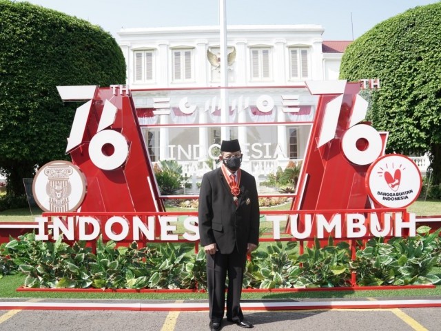 JAKARTA - Ketua Komisi Ombudsman Nasional periode 2000-2011, Antonius Sujata menerima Tanda Kehormatan Bintang Mahaputera Utama yang disampaikan secara langsung oleh Presiden Joko Widodo di Istana Negara, Kamis (12/8/2021).