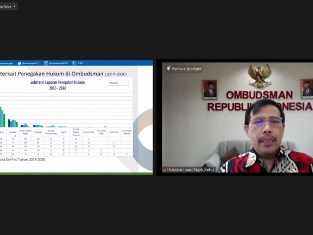 JAKARTA - Ketua Ombudsman RI, Mokhammad Najih menyampaikan paparan terkait Potret Penegakan Hukum bagi Penegak Hukum di Indonesia. Hal ini disampaikan Najih saat menjadi narasumber dalam kegiatan Seminar Nasional "Penegak Hukum: Bagi Penegak Hukum" yang dilakukan secara daring pada Jumat (30/7/2021).