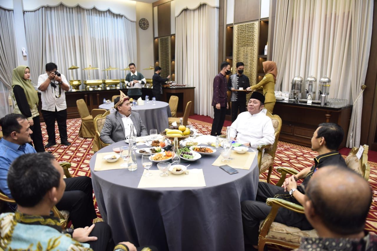 PALEMBANG - Ketua Ombudsman RI, Mokhammad Najih didampingi Kepala Perwakilan Ombudsman RI Provinsi Sumatera Selatan, Adrian Agustiansyah dan jajaran melakukan pertemuan dengan Gubernur Provinsi Sumatera Selatan, Herman Deru di Griya Agung (Istana Gubernur Sumsel), Selasa (25/10/22).
