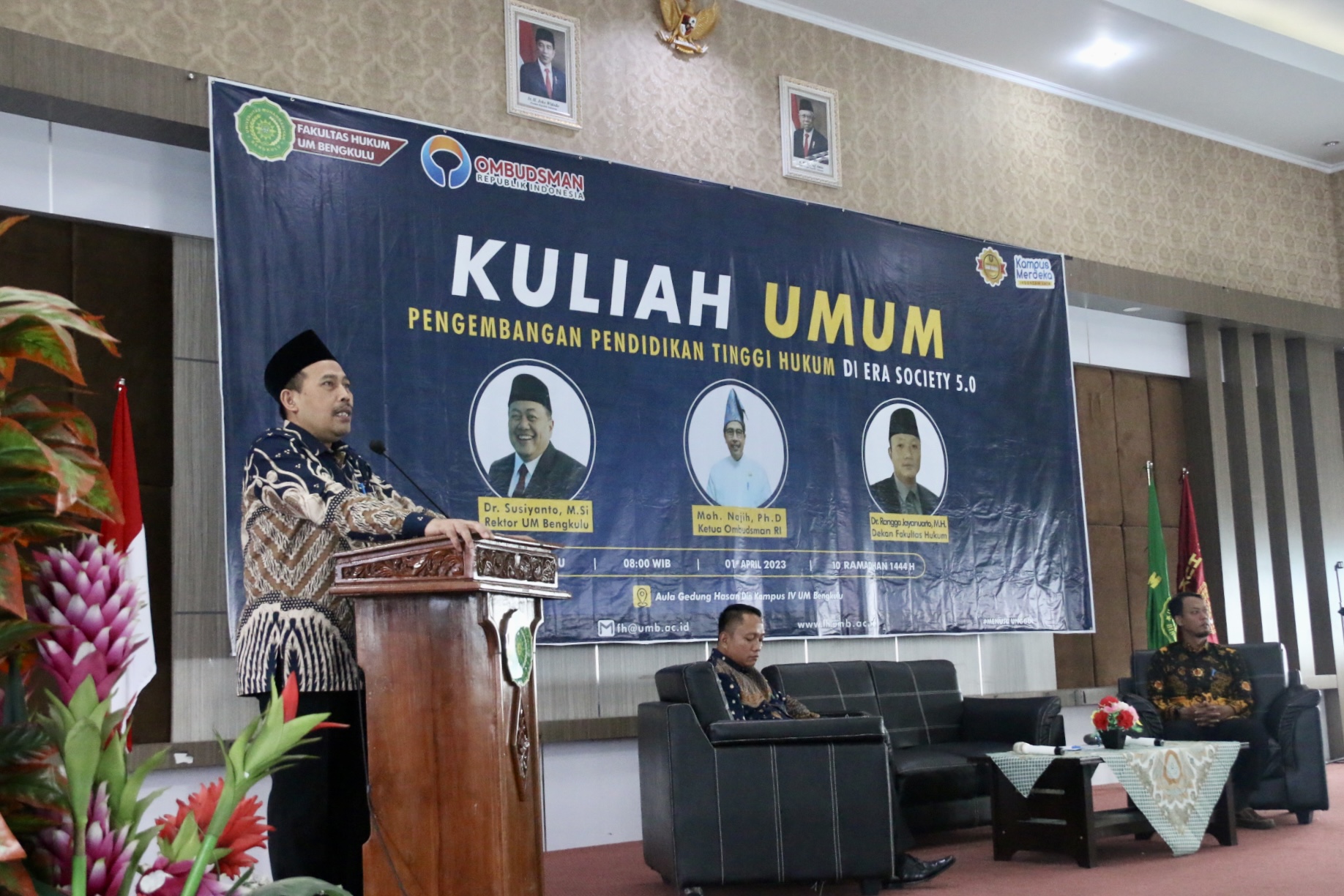 BENGKULU - Dalam kuliah umum yang dilaksanakan oleh Universitas Muhammadiyah (UM) Bengkulu pada Sabtu (1/4/2023), Ketua Ombudsman RI, Mokhammad Najih menekankan pentingnya pemanfaatan teknologi dalam dunia hukum, khususnya dalam penyelenggaraan pelayanan publik di masa kini dan mendatang. Hal ini disampaikannya saat menjadi narasumber paparan berjudul Pengembangan Pendidikan Tinggi Hukum di Era Society 5.0 dengan audiens para Dekan dan Mahasiswa Fakultas Hukum UM Bengkulu.
