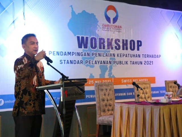 KENDARI - Anggota Ombudsman RI, Hery Susanto membuka Workshop Pendampingan Penilaian Kepatuhan terhadap Standar Pelayanan Publik 2021 yang diselenggarakan oleh Kantor Perwakilan Ombudsman Sulawesi Tenggara pada Selasa (25/5/2021) di Swissbel Hotel Kendari. Di hadapan Kepala Kepolisian Daerah (Kapolda) Sultra Irjen Pol. Drs Yan Sultra, SH dan Kepala Kantor Wilayah BPN Sultra Eljas Tedjo Prijono, Hery berharap survei ini dapat menjadi pembuktian komitmen penyelenggara layanan publik di Provinsi Sultra terhadap pelayanan publik yang berkualitas dan berkeadilan.