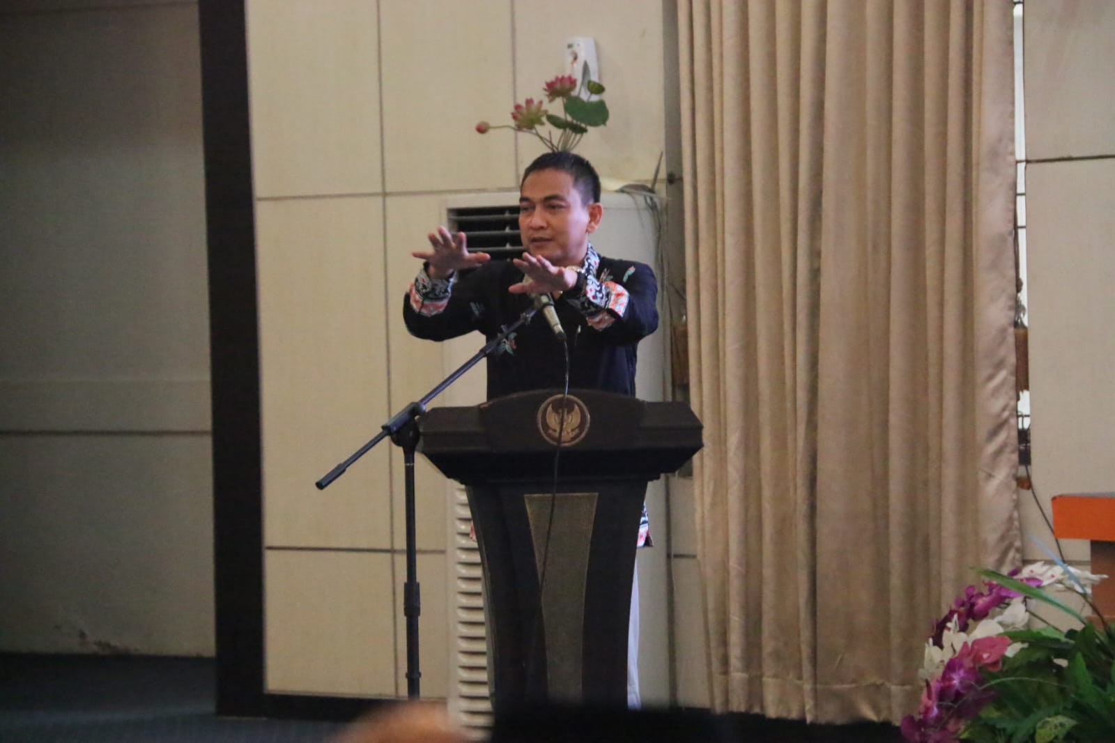 Turut hadir dalam seminar nasional ini Pj. Bupati Kampar Kamsol, Staf Ahli Bidang Pemerintahan, Hukum dan Sumber Daya Manusia Yurnalis Basri, yang hadir mewakili Gubernur Riau, Ketua GM PAMRI Junaidi, Meta handayani mewakili direktur PT Pertamina, serta Kepala Keasistenan Utama V Ombudsman RI Saputra Malik. (FAT)