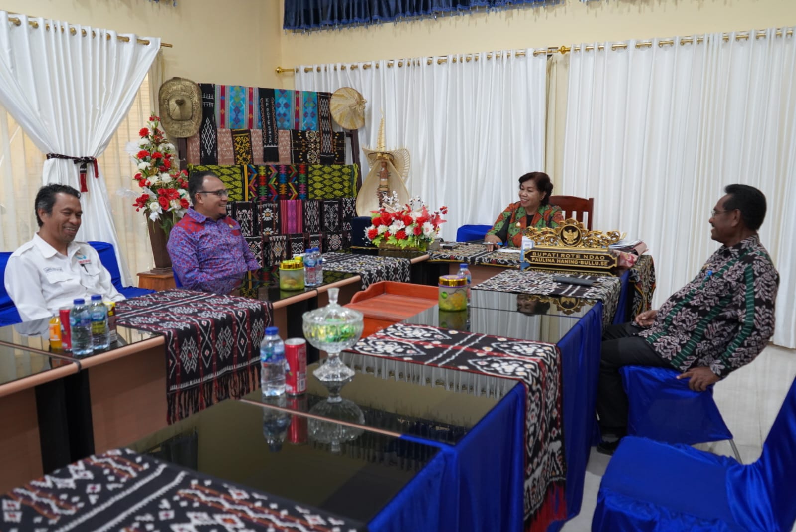 Rote - Anggota Ombudsman RI, Robert Na Endi Jaweng didampingi Kepala Perwakilan Ombudsman RI Provinsi Nusa Tenggara Timur, Darius Beda Danton melakukan kunjungan ke Kantor Bupati Rote Ndao pada Kamis (6/7/2023). Kehadiran Robert disambut langsung oleh Bupati Rote Ndao, Paulina Haning; Wakil Bupati Rote Ndao, Stefanus M. Saek; Inspektorat Rote Ndao, Arkalaus H. Lenggu; Kepala Dinas Kesehatan Rote Ndao, Nelly Feby Riwu; Kepala Bagian Organisasi dan Tata Laksana, Ronald H. Taulo; beserta jajaran.