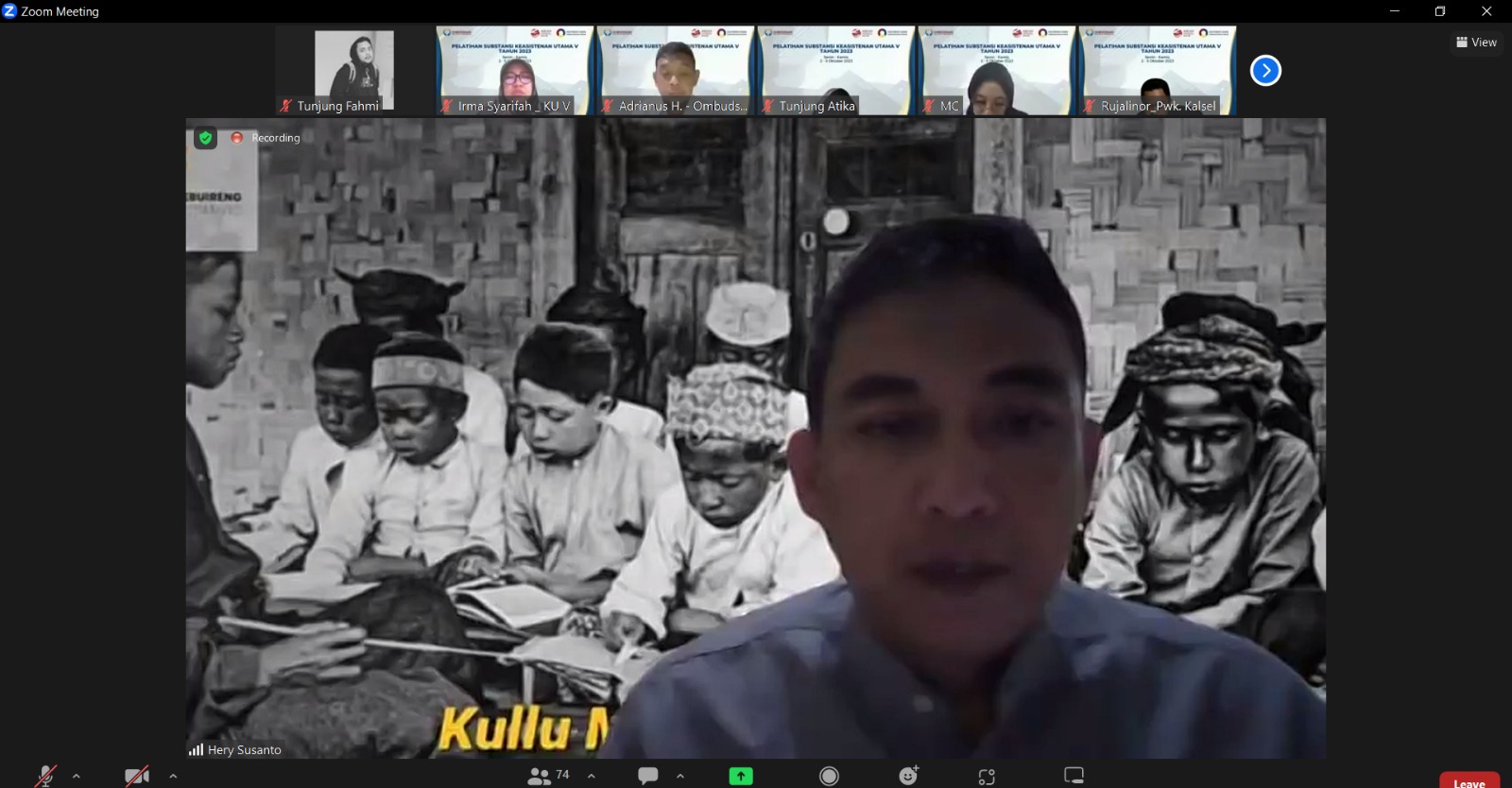 Jakarta-Anggota Ombudsman RI, Hery Susanto membuka kegiatan "Pelatihan Substansi Keasistenan Utama V Tahun 2023" bagi Asisten Ombudsman RI Pusat dan Perwakilan, Senin (02/10/2023) secara daring, kegiatan ini diselenggarakan dimulai pada tanggal 02 Oktober 2023 sampai dengan 05 Oktober 2023. Materi pokok pada kegiatan terkait substansi energi dan sumber daya mineral, kehutanan dan lingkungan hidup, perhubungan, pekerjaan umum dan infrastruktur, pariwisata dan ekonomi kreatif, penanaman modal dan investasi, serta kelautan dan perikanan.