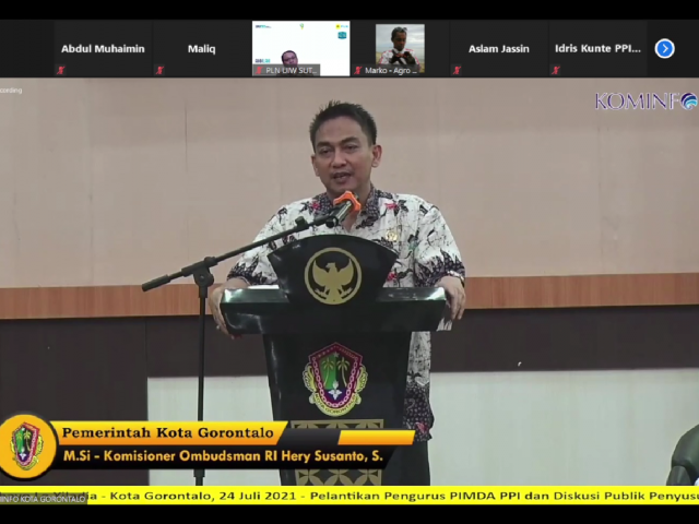 Gorontalo - Anggota Ombudsman RI Hery Susanto hadir sebagai salah satu pemateri dalam acara Diskusi Publik dengan tema Rencana Penyusunan Kebijakan Penertiban Penggunaan Tenaga Listrik (P2TL) & Penyesuaian Perhitungan Pemakaian Tenaga Listrik (P3TL) yang Aspiratif dalam Penyelenggaraan Kebijakan Publik PT PLN (Persero) yang diselenggarakan oleh Perhimpunan Pergerakan Indonesia bersama PT PLN (Persero) dan Pemerintah Kota Gorotalo pada 24 Juli 2021 di Kota Gorntalo.