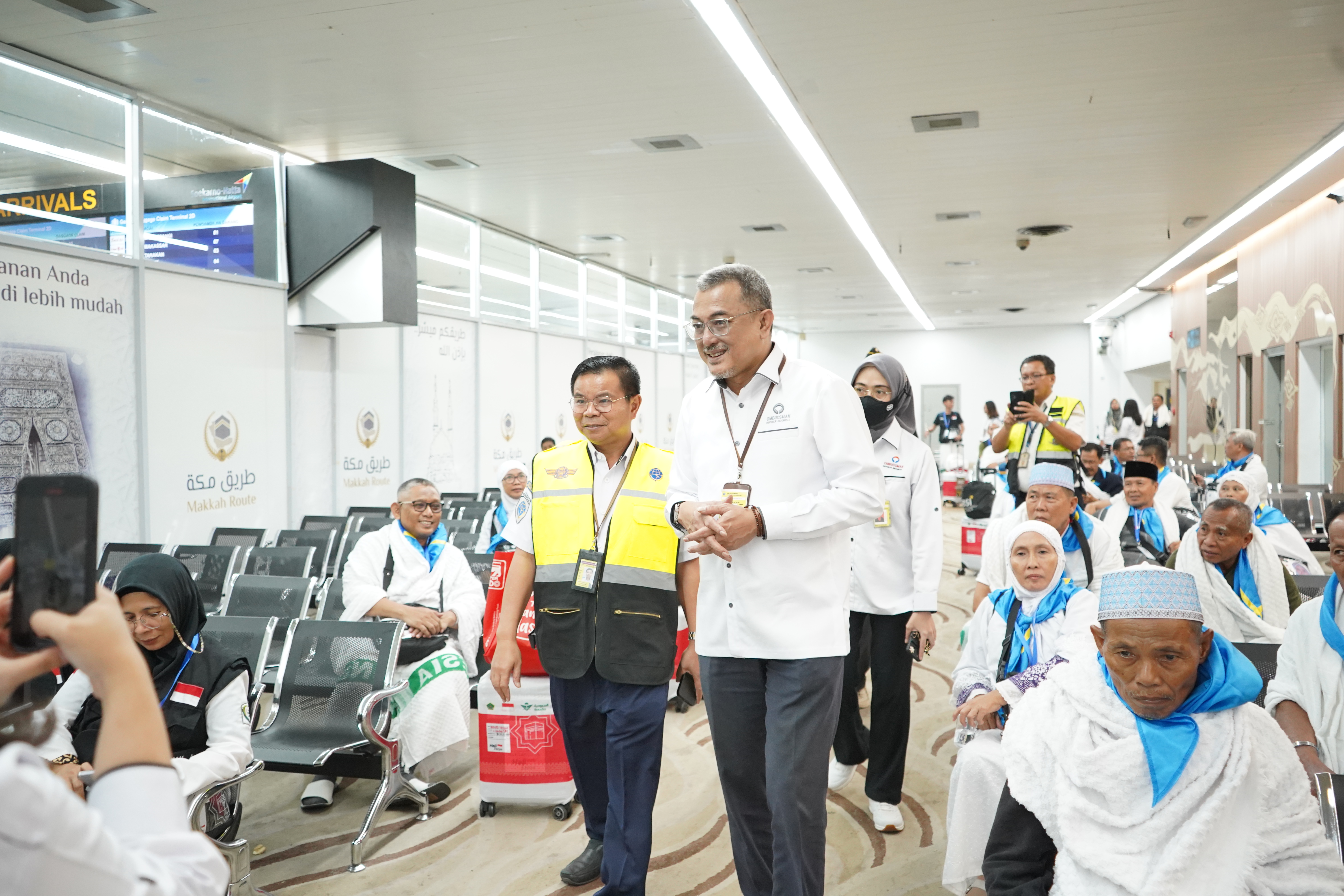 Jakarta - Anggota Ombudsman RI Indraza Marzuki Rais didampingi oleh Kepala Bidang Angkutan Udara dan Kelaikudaraan Otoritas Bandara Udara Wilayah I Kelas Utama Purnama melakukan pemantauan terkait pelayanan publik pemberangkatan calon jemaah haji tahun 2024 di Bandara Soekarno Hatta, Tangerang pada Kamis (6/6/2024).