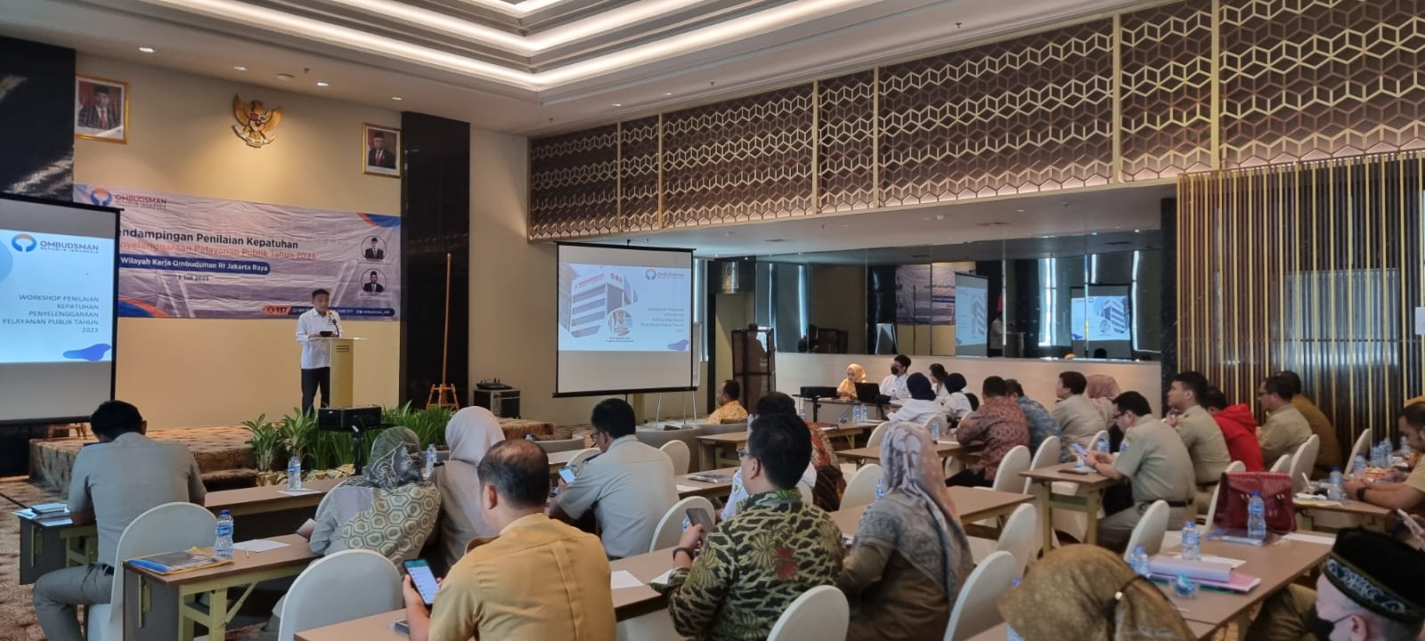 Dimana, bukan hanya terhadap variabel atributif, melainkan juga variabel substantif. Demikian ditegaskan oleh Anggota Ombudsman RI, Hery Susanto dalam Workshop Pendampingan Penilaian Kepatuhan Penyelenggaraan Pelayanan Publik Tahun 2023 di wilayah kerja Ombudsman RI Perwakilan Jakarta Raya, Senin (3/7/2023).