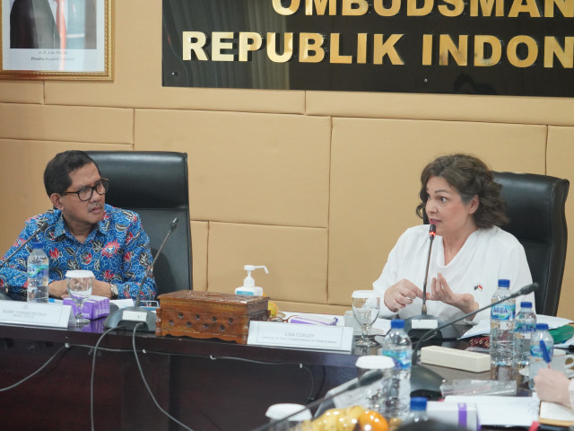 Turut hadir dalam pertemuan Anggota Ombudsman RI Dadan S. Suharmawijaya, Indraza Marzuki Rais, Jemsly Hutabarat, Johanes Widijantoro dan Robert Na Endi Jaweng, Asistant Director International Program OCO Melita Bigirimana, dan Senior Advisor International Team OCO Sarah O'Connor.