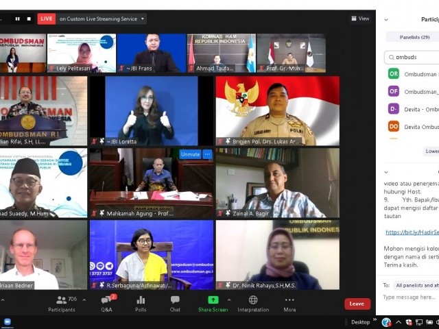 Seminar virtual internasional ini dimodetarori oleh Ketua Yayasan Lembaga Bantuan Hukum Indonesia, Asfinawati, S.H. Turut hadir dalam acara, Ketua Ombudsman Thailand, General Viddhavat Rajatanun, Sekretaris Jenderal Ombudsman Turki, Ibrahim Kilinc, Direktur Jenderal Public Complaints Bureau Malaysia, Datuk Harjeet Sing, Direktur International Relations Danish Parliamentary Ombudsman, Klavs Kinnerup Hede dan Director General Ombudsman Pakistan, Mr. Aijaz Hussain Lone. (awp)