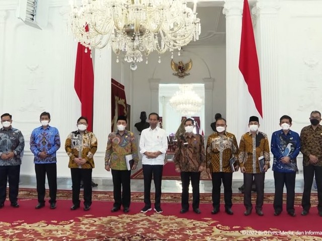 Jakarta - Presiden Joko Widodo menerima para pimpinan Ombudsman Republik Indonesia di Istana Merdeka, Jakarta, pada Selasa, 12 April 2022. Dalam pertemuan tersebut, Ombudsman RI menyerahkan laporan tahunan 2021, termasuk menyampaikan beberapa agenda penting di dalam rangka peningkatan kualitas penyelenggaraan pelayanan publik di Indonesia.