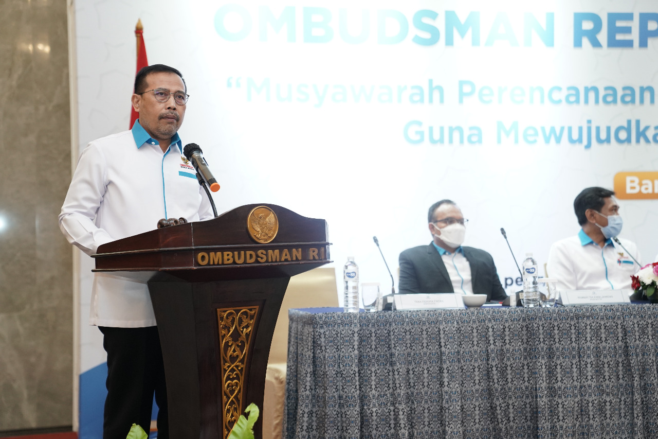 BANDUNG BARAT - Ketua Ombudsman RI, Mokhammad Najih membuka Rapat Kerja Nasional (Rakernas) II dengan tema "Musyawarah Perencanaan Pengawasan Penyelenggaraan Pelayanan Publik guna Mewujudkan Pelayanan Publik yang Berkualitas" di Hotel Mason Pine Bandung Barat, Senin (7/11/2022). Dalam kesempatan ini, Ketua meminta agar isu pelayanan publik bagi kaum marginal dapat dikedepankan, baik di Kantor Pusat maupun Perwakilan.