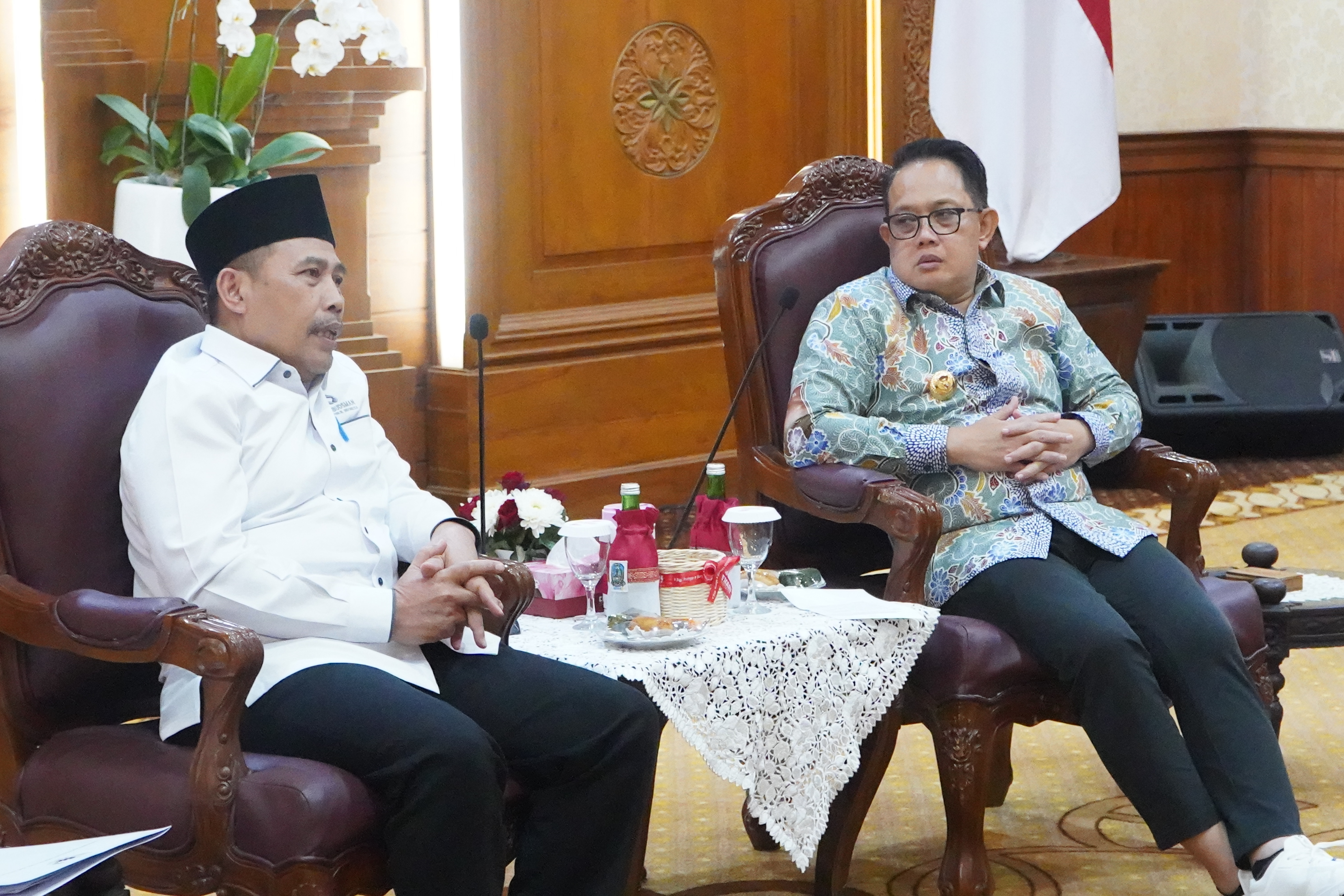 SURABAYA - Perihal belum dilaksanakannya Rekomendasi Ombudsman RI terkait Maladministrasi Persoalan Penghunian Bangunan Eks Penguasa Pelaksana Dwikora Daerah (Pepelrada) di Kota Probolinggo, Ketua Ombudsman RI Mokhammad Najih melakukan pertemuan dengan Pj Gubernur Jawa Timur Ady Karyono didampingi Pj. Wali Kota Probolinggo Nurkholis, Kamis (30/5/2024) di Kantor Gubernur Jatim, Surabaya. Dalam pertemuan ini, Najih didampingi Kepala Keasistenan Rekomendasi dan Monitoring Ombudsman RI Ratna Sari Dewi, Kepala Pemeriksaan Perwakilan Ombudsman Jatim, Triyoga Muhtar Habibi, serta jajaran.