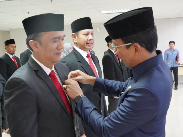 Jakarta - Sekretaris Jenderal Ombudsman RI, Suganda Pandapotan Pasaribu menyematkan penghargaan Satyalancana Karya Satya kepada 65 Pegawai Negeri Sipil di lingkungan Ombudsman RI yang terdiri dari 25 PNS pusat dan 40 PNS di Ombudsman RI Perwakilan Provinsi. Penyematan dilakukan secara hybrid di Gedung Ombudsman RI pada Jumat (23/8/2024).