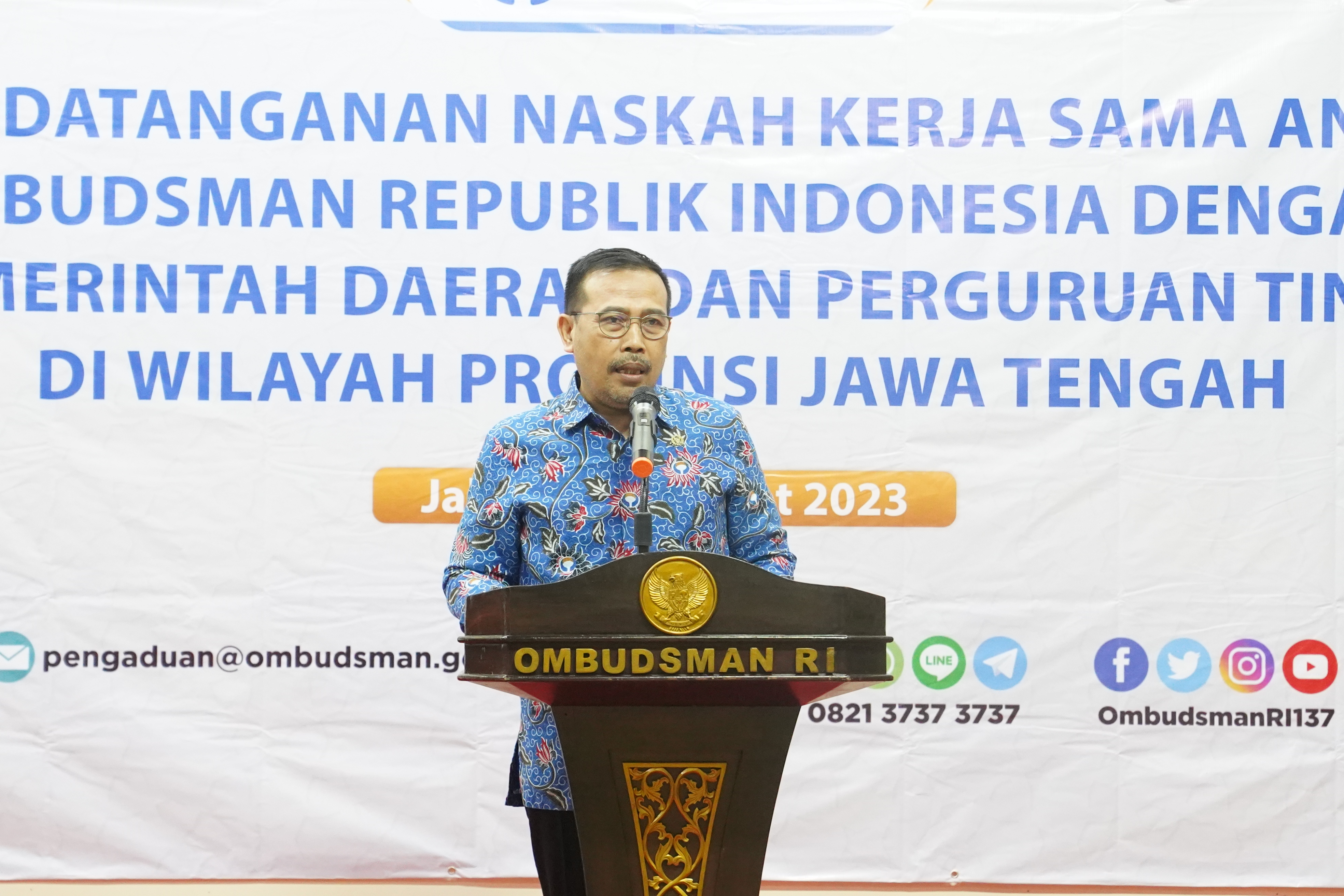 Ketua Ombudsman RI, Mokhammad Najid dalam sambutannya mengatakan bahwa Jawa Tengah merupakan sebuah provinsi yang besar sehingga diperlukan koordinasi dan kerja sama yang baik agar setiap permasalahan baik keluhan atau laporan masyarakat dapat ditangani dengan cepat.