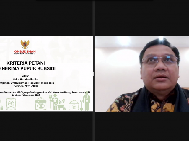 JAKARTA - Ombudsman RI berpendapat bahwa penentuan kriteria dan syarat petani penerima pupuk bersubsidi belum dilakukan secara tepat dan cermat. Hal ini disampaikan Anggota Ombudsman RI, Yeka Hendra Fatika dalam paparannya pada Focus Group Discussion (FGD) terkait "Definisi dan Kriteria Petani Penerima Pupuk Bersubsidi" yang dilaksanakan oleh Kementerian Koordinator Bidang Perekonomian secara hybrid pada Rabu (7/12/22).