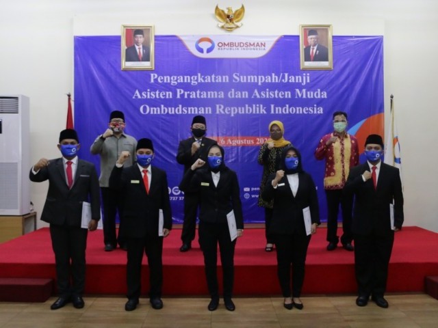 Jakarta - Ketua Ombudsman Republik Indonesia, Prof. Amzulian Rifai mengangkat sumpah janji 54 orang Asisten Muda dan 5 orang Asisten Pratama Ombudsman Republik Indonesia, pada Kamis (6/8/2020) bertempat di Ruang Serbaguna, Lantai Dasar Gedung Ombudsman RI.