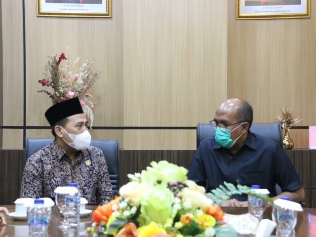 PADANG- Ketua Ombudsman RI Mokhammad Najih bertemu dengan Ketua DPRD Provinsi Sumatera Barat Supardi di Gedung DPRD, Jumat (10/12/2021) untuk membahas rencana kerja sama di bidang pengawasan pelayanan publik.