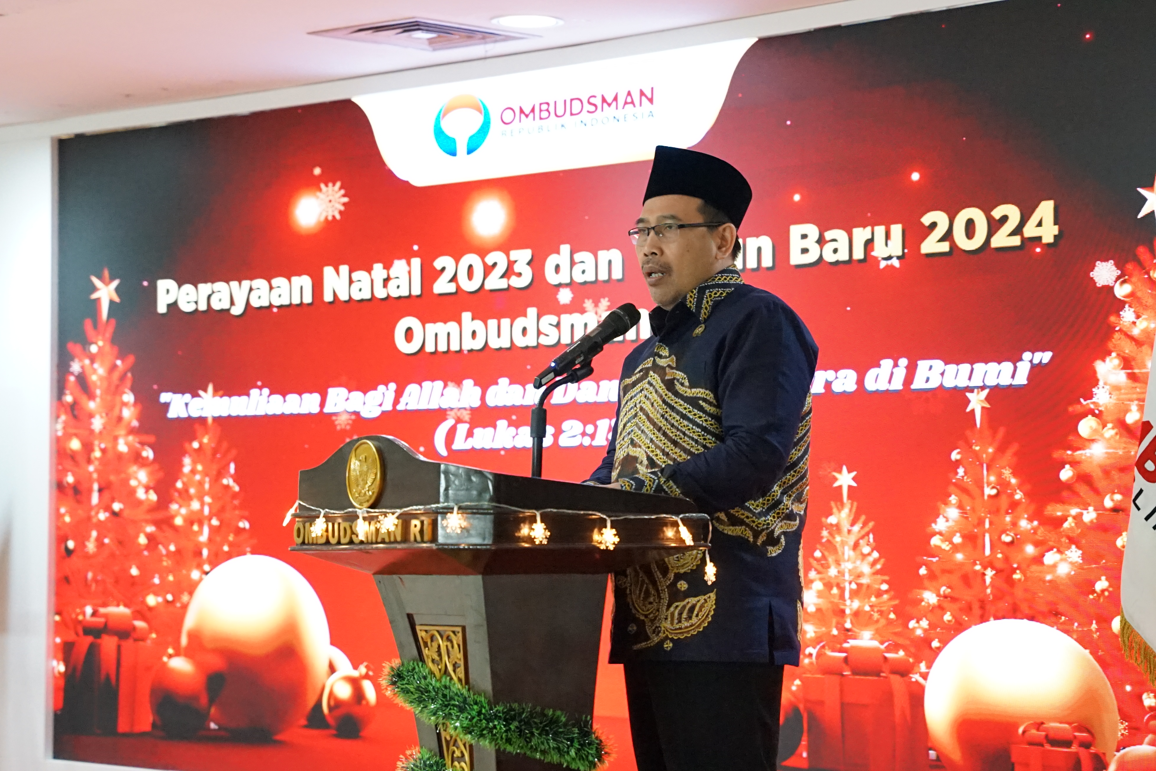 Hal ini disampaikan Ketua Ombudsman RI Mokhammad Najih pada kegiatan Perayaan Natal 2023 dan Tahun Baru 2024 Ombudsman RI dengan tema "Kemuliaan Bagi Allah dan Damai Sejahtera di Bumi" pada Selasa (16/01/2024) di Aula Lantai 1, Gedung Ombudsman RI.