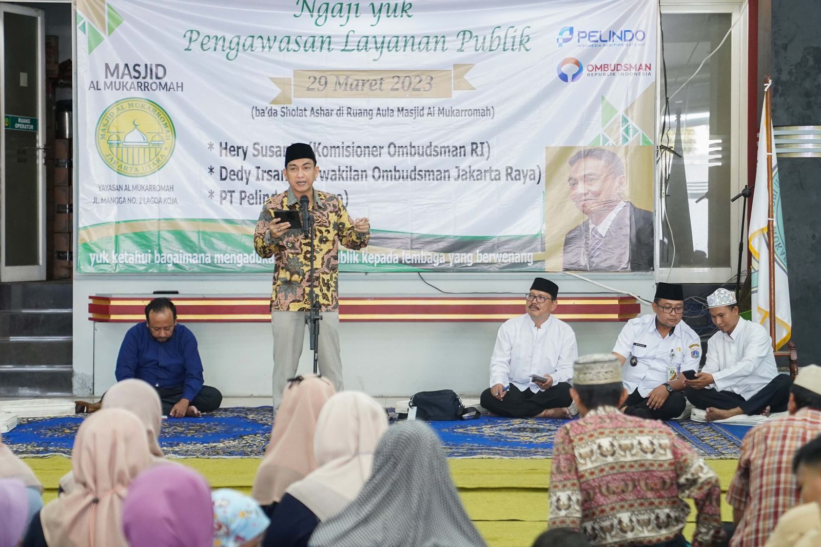 JAKARTA - Anggota Ombudsman RI, Hery Susanto menjadi Keynote Speaker dalam kegiatan Ngaji Bareng Pelayanan Publik Pekan Ramadhan Pengurus Masjid Al Mukarromah guna memperkuat peran serta masjid dalam pengawasan pelayanan publik, Rabu (29/3/2023) di Masjid Al Mukarromah Kelurahan Lagoa Kecamatan Koja Kota Jakarta Utara Propinsi DKI Jakarta. Turut hadir Dedi Irsan selaku Kepala Perwakilan Ombudsman Jakarta Raya, Ramdansyah selaku Ketua Pengurus Masjid Al Mukaromah, dan jajaran Camat, Kelurahan di lingkungan Kecamatan Koja Kota Jakarta Utara Propinsi DKI Jakarta.