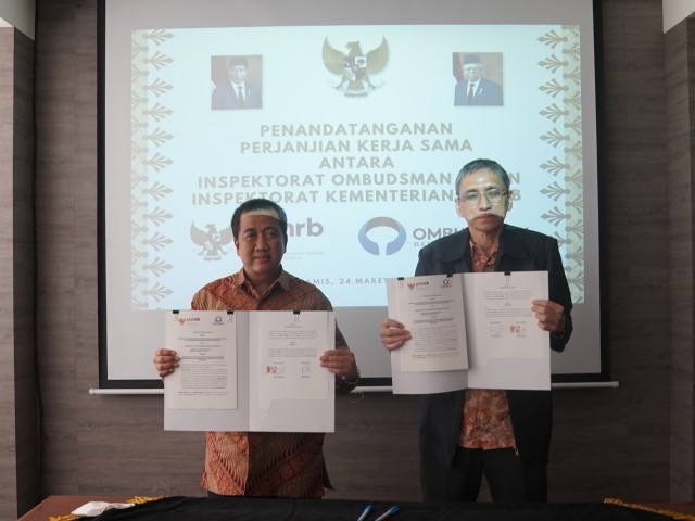 Jakarta - Inspektorat Ombudsman RI mulai mengimplementasikan Aplikasi Sistem Informasi Manajemen Pengawasan berbasis web untuk meningkatkan efisiensi kinerja pengawasan. Demikian disampaikan Inspektur Ombudsman RI, Marsetiono, dalam penandatanganan perjanjian kerja sama antara Inspektorat Kementerian Pendayagunaan Aparatur Negara dan Reformasi Birokrasi dengan Inspektorat Ombudsman RI tentang Implementasi Aplikasi Sistem Informasi Manajemen Pengawasan untuk Inspektorat Ombudsman Republik Indonesia pada Kamis (24/3/2022) di Jakarta.
