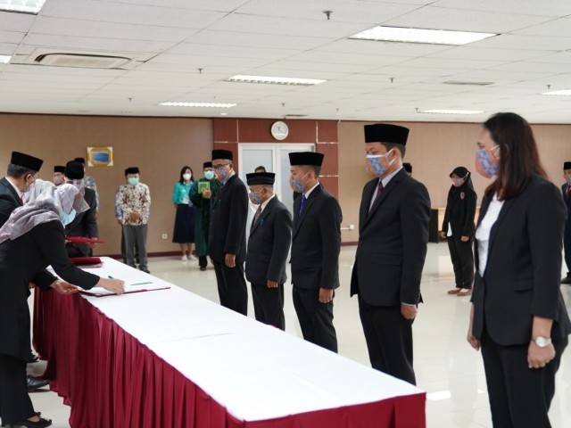 JAKARTA -Wakil Ketua Ombudsman RI, Lely Pelitasari Soebekty melantik lima orang Kepala Perwakilan (Kaper) Ombudsman yakni Hadi Rahman selaku Kaper Kalimanan Selatan, Shulby Yozar Ariadhy selaku Kaper Kepulauan Bangka Belitung, Dan Satriana selaku Kaper Jawa Barat, Agus Muttaqin selaku Kaper Jawa Timur dan Meilany Fransisca Limpar selaku Kaper Sulawesi Utara pada Senin (4/1/2021) di Kantor Ombudsman RI, Jalan HR Rasuna Said Jakarta Selatan. Wakil Ketua Ombudsman dalam kesempatan yang sama juga melantik dan mengangkat sumpah/janji jabatan 124 Asisten Ombudsman yang naik jenjang.