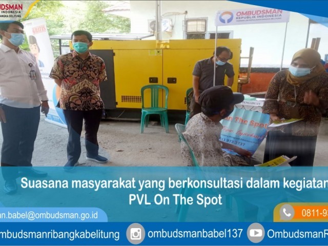 Selama kegiatan PVL On the Spotberlangsung,Ombudsman Babel menjaring sebanyak 90 pengaduan masyarakat terkait pelayanan publik. Sektor yang dikeluhkan masyarakat Sebagian besar mengenai pelayanan pada tingkat kelurahan/desa dan penyaluran Bantuan Sosial Tunai (BST). Kegiatan ini sebagai langkah Ombudsman Babel untuk memudahkan akses masyarakat menyampaikan potensi maladministrasi pelayanan publik serta menyediakan ruang bagi masyarakat untuk berpartisipasi dalam perbaikan pelayanan publik yang ada di Provinsi Kepulauan Bangka Belitung.