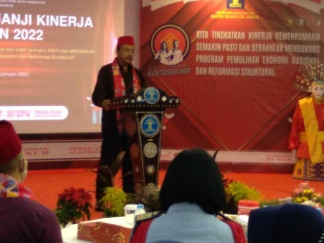 PLT Kepala Ombudsman RI Perwakilan Jakarta Raya (Ombudsman Jakarta Raya) Dedy Irsan hadir dalam Deklarasi Janji Kinerja dan Pencanangan Zona Integritas Kanwil Kemenkumham DKI, 14 Januari 2022.